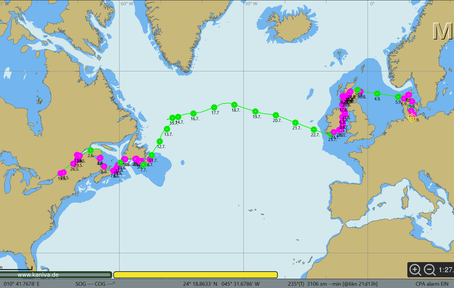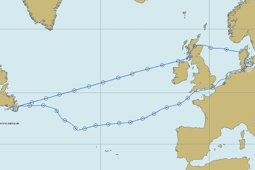 Kanivas Reise 2025: Vom St. Lorenz Strom über Neufundland, Irland, Schottland und Dänemark zurück nach Lübeck.