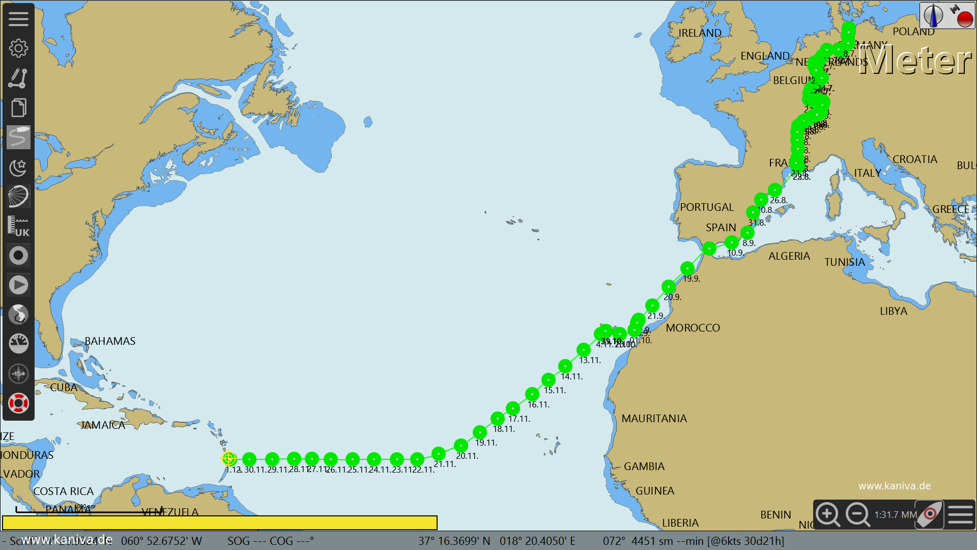 Kanivas Reise 2023: Daten für Atlantik von El Hierro nach Martinique