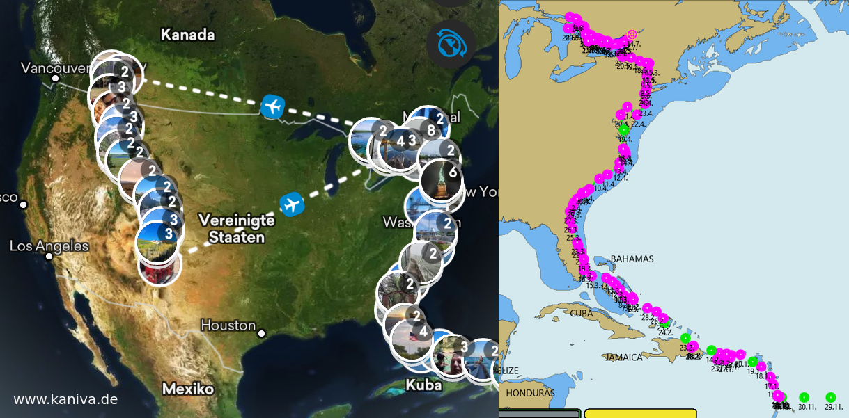 Kanivas Reise 2024: Von Martinique zur US Ostküste und hoch bis zur Georgian Bay im Lake Huron. Zwischendurch eine Radtour von Calgary nach New Mexico entlang der Rocky Mountains auf der GDMBR.